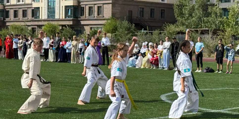 Ресми ашылудан кейін спорт алаңында мектеп оқушылары шинкиокушинкай каратэ, гір тасын көтеру, волейбол бойынша өздерінің спорттық өнерін көрсетті.