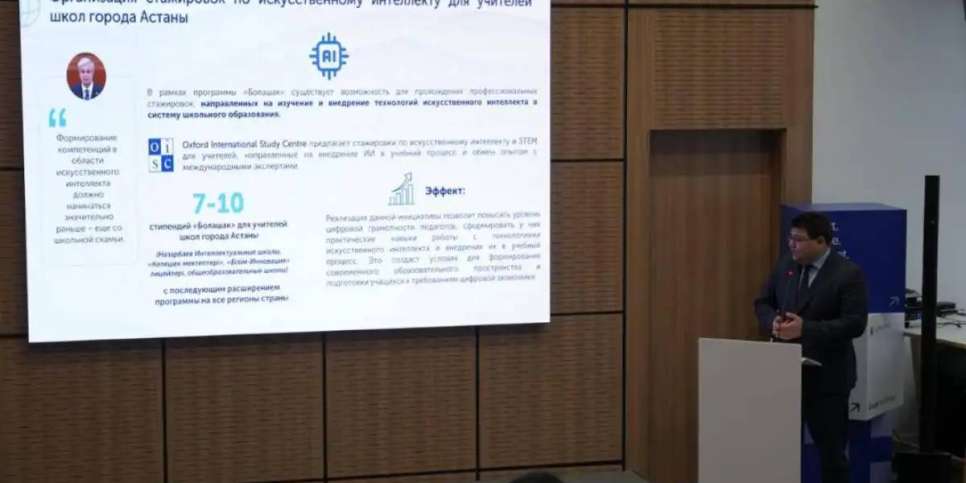 «Халықаралық бағдарламалар орталығы» АҚ басқарма төрағасы Әділ Құсманов білім беру мен адами капиталды дамыту саласындағы бастамаларды таныстырды. Оның ішінде мұғалімдерге арналған жасанды интеллект бойынша тағылымдамалар ұйымдастыру және мектептегі AI жобаларын қолдау бастамалары бар.