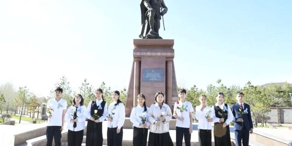 Жеңістің 80 жылдығына орай астаналық оқушылар Бауыржан Момышұлының ескерткішіне гүл шоқтарын қойды, деп хабарлады Elordainfo.kz.