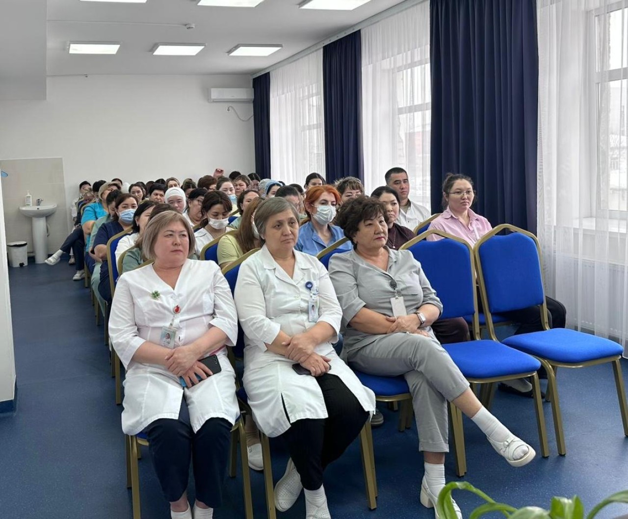Медицина қызметкерлері талқылауға белсенді қатысып, мамандарды әлеуметтік қорғау, еңбек жағдайы және саланы одан әрі дамытуға қатысты сұрақтар қойды.