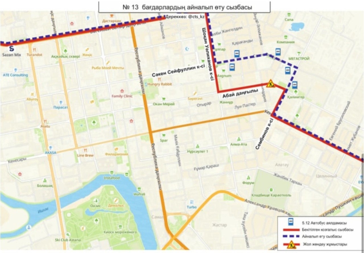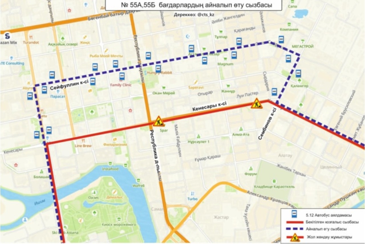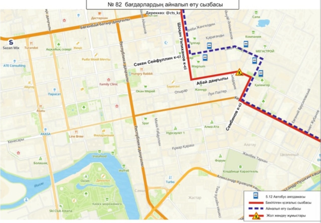 «№ 2, 13, 55А, 55Б, 63, 68, 82 бағдарлар қозғалыс сызбасы уақытша өзгертілді», - делінген хабарламада.