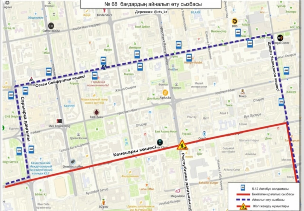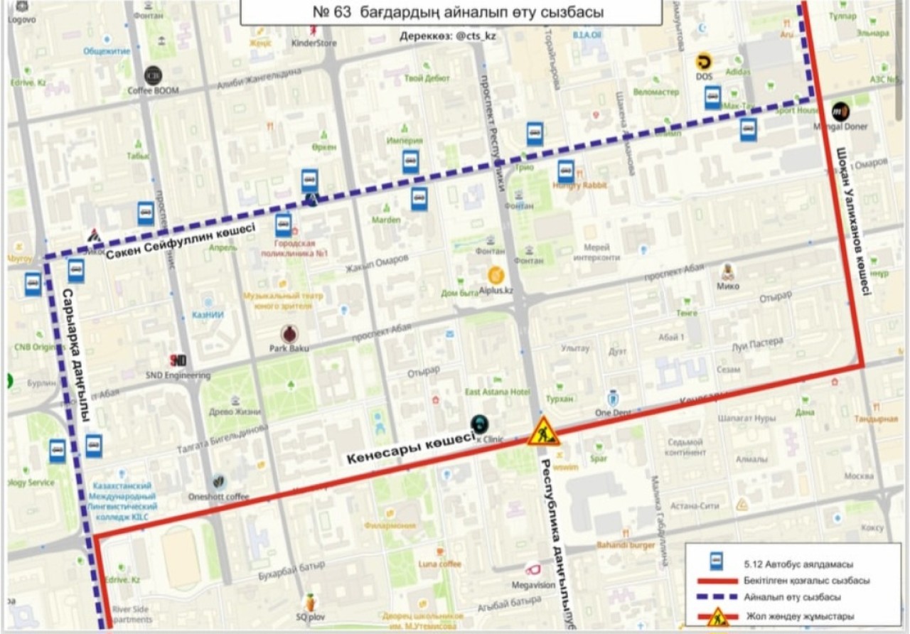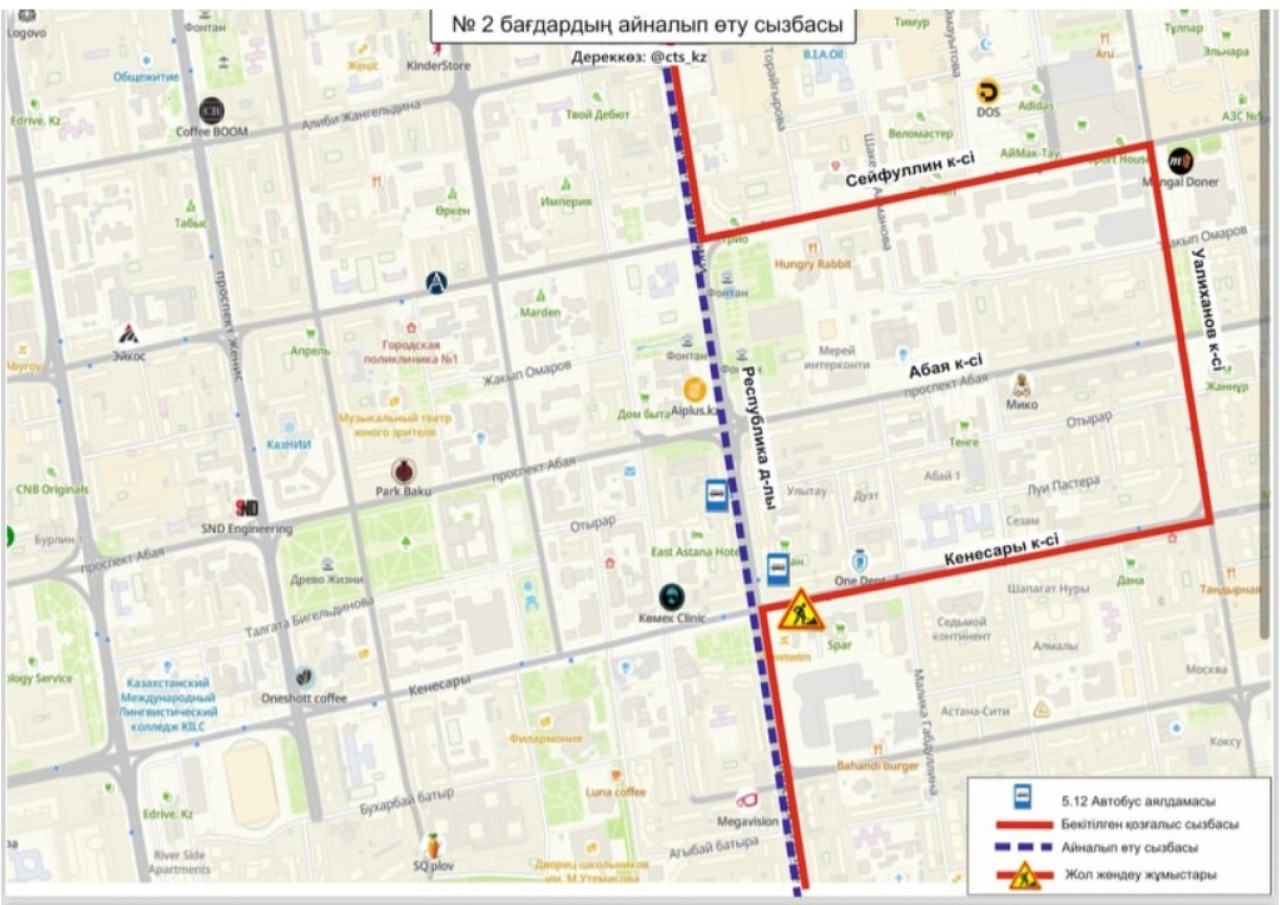 «№ 2, 13, 55А, 55Б, 63, 68, 82 бағдарлар қозғалыс сызбасы уақытша өзгертілді», - делінген хабарламада.
