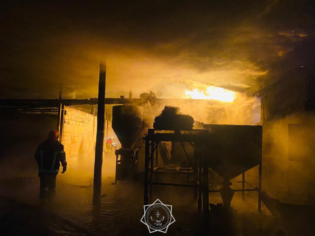 Елордалық өрт сөндірушілер қоймадан шыққан өртті сөндіріп жатыр
