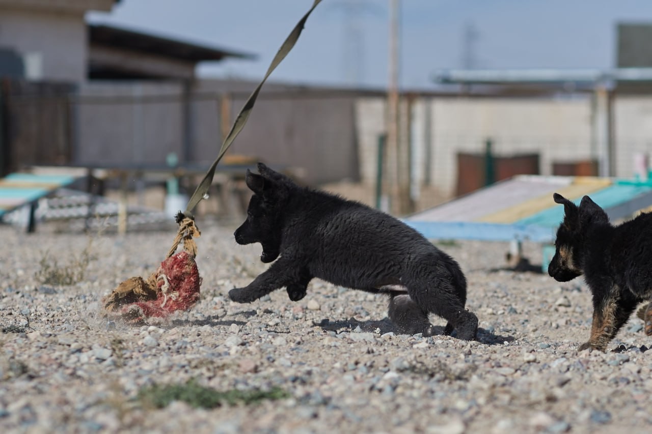 - Алғашқы 45 күнде күшіктер енесінің сүтімен қоректенеді, кейін құрғақ азыққа көшіріледі. Одан соң оларды қоршаған ортаға бейімдеу жұмысы жүргізіледі. Үш ай толғанда түрлі кедергілер алаңына шығарылады. Бұл кезде олардың есту дағдысын дамыту маңызды, сондықтан әрқайсысына есім беріледі. Кейін «отыр», «тұр», «жат» секілді пәрмендер үйретіледі. Бұдан кейін тапсырмалар күрделеніп, иіс арқылы зат іздеу кезеңіне өтеді, - деді кинология орталығының офицері, майор Жантөре Мендиоразов.