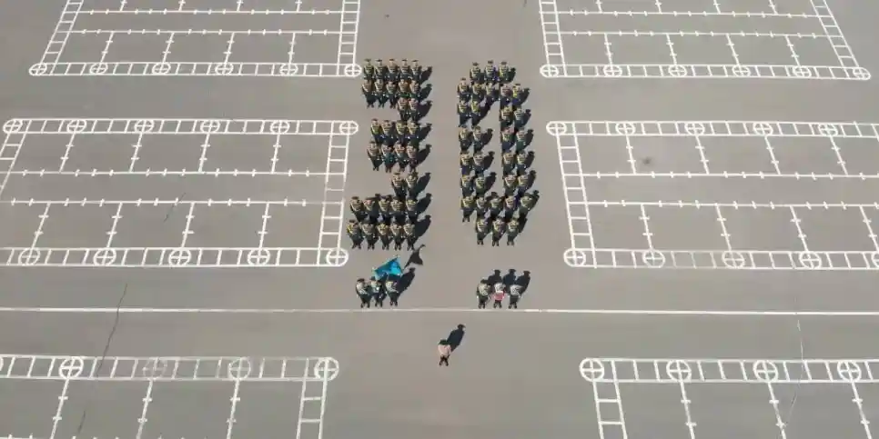 Ұландықтар Ата заңға және оның мемлекет болашағындағы маңызын айшықтау мақсатында «30» санын бейнелеп сап түзеді.