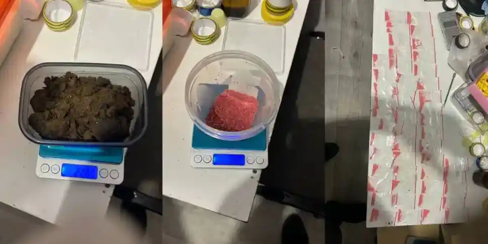 Жалға алған пәтерін тінту кезінде ұқсас заттар салынған 125 орама, ақ және қызыл түсті ұнтақ тәріздес заттары бар 5 контейнер, қара-сұр түсті тас тәріздес зат салынған 1 контейнер, сондай-ақ электронды таразы, zip-пакеттер және оқшаулағыш ленталар тәркіленді. Сараптама қорытындысы бойынша, алынған заттар: «Alpha-PVP» — 817,16 грамм, мефедрон — 782,44 грамм, гашиш — 192,13 грамм. Барлығы 1 келі 599,6 грамм есірткі заты анықталды.