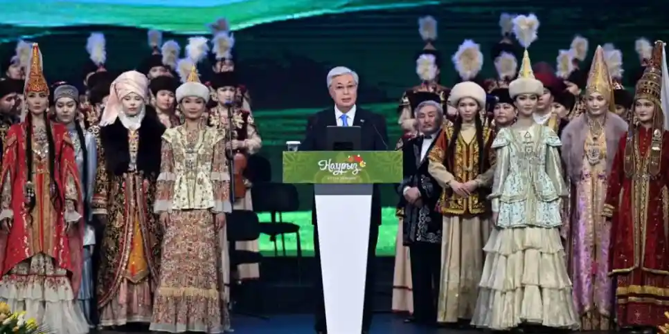 «Ұлыстың ұлы күні – ұлтымыздың ұлық мейрамы. Бұл – біздің ата дәстүріміз. Шуақты көктем мерекесінде бүкіл дүние қайта жаңғырады. Күн мен түн теңеледі. Қазақ елі әз-Наурызды көне заманнан бері тойлап келеді. Наурыз – ең алдымен, игілікті істердің мерекесі. Осы күндері әр үйде ақ дастархан жайылады. Ел-жұрт бір-бірімен қауышып, ақ тілегін айтады. Мұқтаж жандарға қайырымдылық жасап, қамқорлық көрсетеді. Ұлыстың ұлы күні биыл да қасиетті Ораза айымен тұспа-тұс келіп отыр. Еліміз үшін мұның мән-маңызы зор. Себебі біздің дініміз бен дәстүріміз – егіз. Қос қазынамыз халқымыздың бірегей болмысын айшықтай түседі», - деді Қасым-Жомарт Тоқаев.