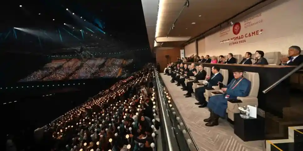 Президент Қасым-Жомарт Тоқаев шет мемлекеттерден келген мәртебелі меймандармен және жұртшылықпен бірге V Дүниежүзілік көшпенділер ойындарының салтанатты ашылу рәсімін тамашалады.