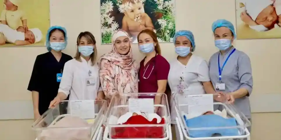 «Айша Искакова 33-аптада босанды. Салмағы 2135, 1965 және 1580 грамм болған жаңа туған нәрестелер 21 қазан күні ауруханадан шығарылып, бүгінде өз үйінде отбасымен алғашқы мерекелерін қарсы алмақ. Республика күні қарсаңында үшемнің дүниеге келуі жақсылықтың хабаршысы, үлкен қуаныштың басы болса керек», – деді аурухана директорының босандыру жөніндегі орынбасары Дәурен Мусин.