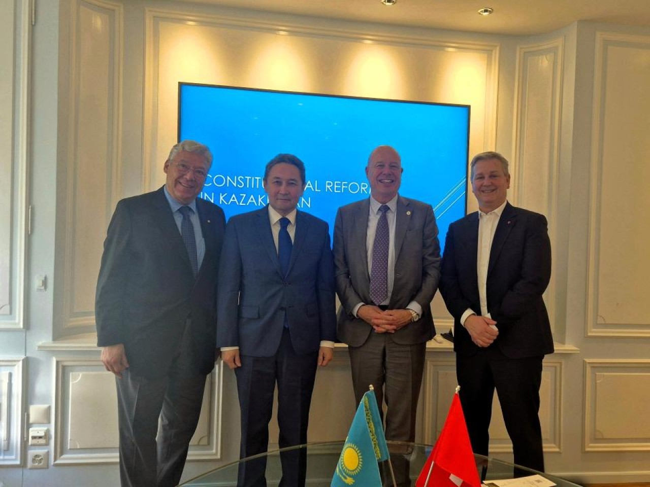 «Швейцария-Қазақстан» парламентаралық достық тобының мүшелері жүргізіліп жатқан реформаларды жоғары бағалап, олардың дәйекті және жүйелі сипатын атап өтті. Швейцария Парламенті Кантондар Кеңесінің (кіші палата) бұрынғы президенті Филиппо Ломбарди конституциялық нормаларды жаңарту мемлекеттік басқарудағы ашықтықты арттыруға, құқықтық кепілдіктерді нығайтуға және парламентаризмді дамытуға ықпал ететінін атап өтті.