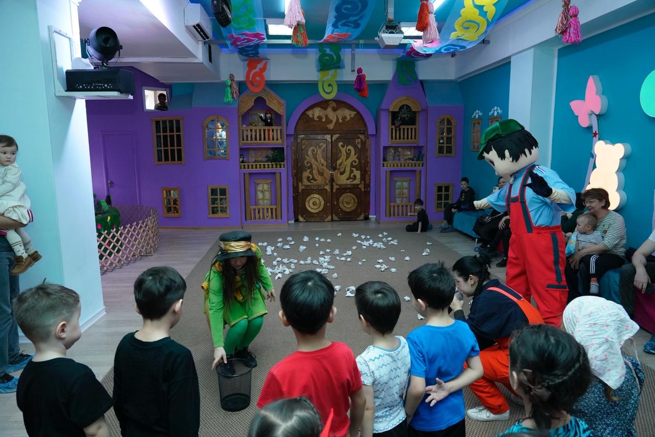 Театр әртістері балаларға тазалықтың маңызы тек қоғамдық орындарда ғана емес, әрбір үйде де сақталуы керектігін түсіндірді. Сонымен қатар, бүлдіршіндерге сұрақтар қойылып, олардың ой-өрісін дамытуға бағытталған тапсырмалар ұсынылды.