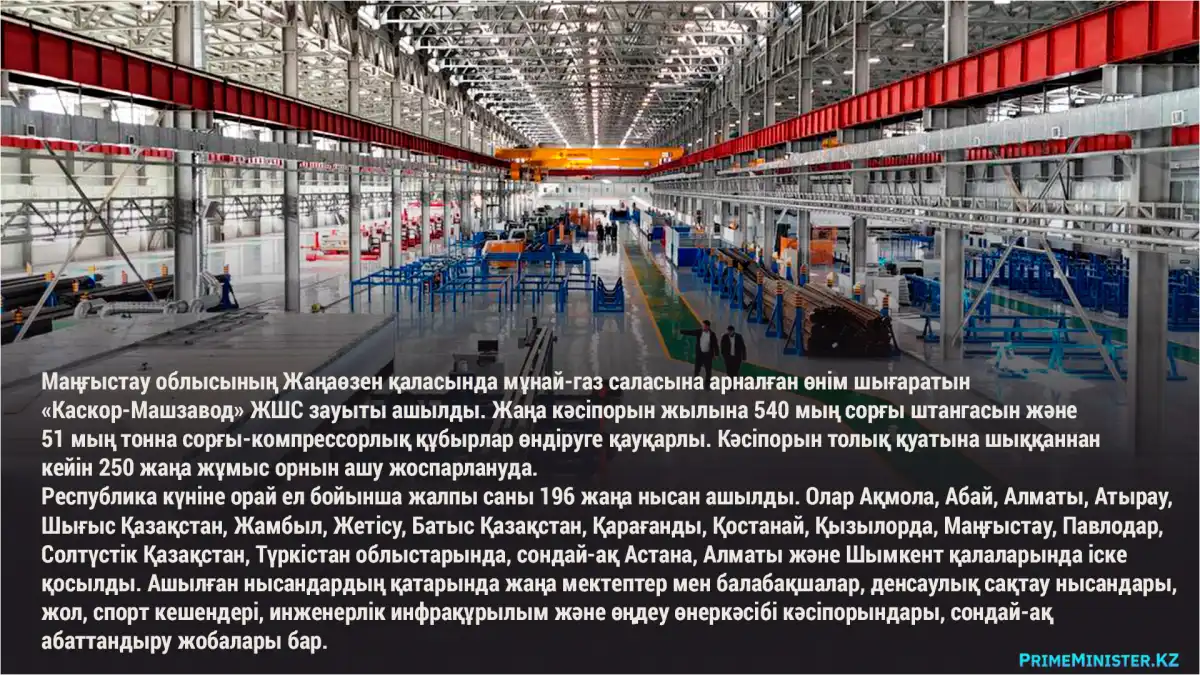 Республика күніне орай бүкіл еліміз бойынша ірі өнеркәсіптік кәсіпорындардан бастап әлеуметтік, спорттық және инфрақұрылымдық жобаларға дейін 196 жаңа нысан пайдалануға беріледі, деп хабарлады Elordainfo.kz.