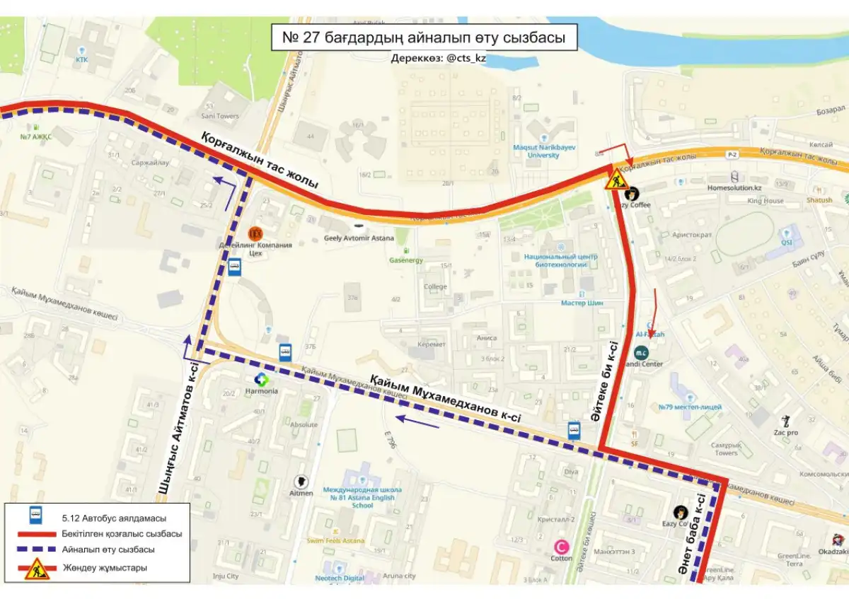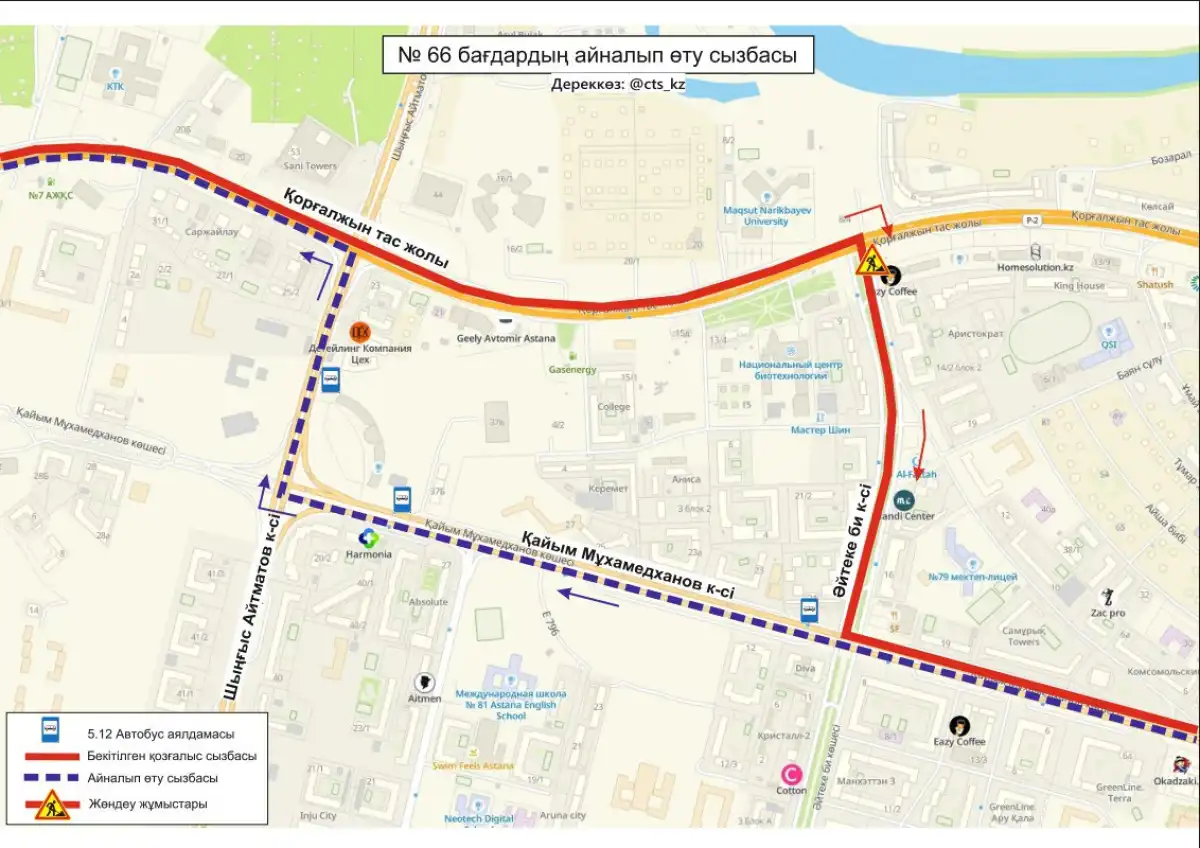 №27, 66 бағдарларының қозғалыс сызбасы уақытша өзгертілді», - деп жазылған хабарламада.