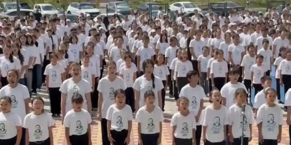Ұлы ақын Абайдың 180 жылдығына орай Астана қаласындағы №101 орта мектепте елорданың 5 мыңға жуық оқушысы «Желсіз түнде жарық ай» әнін бірге орындады, деп хабарлады Elordainfo.kz.