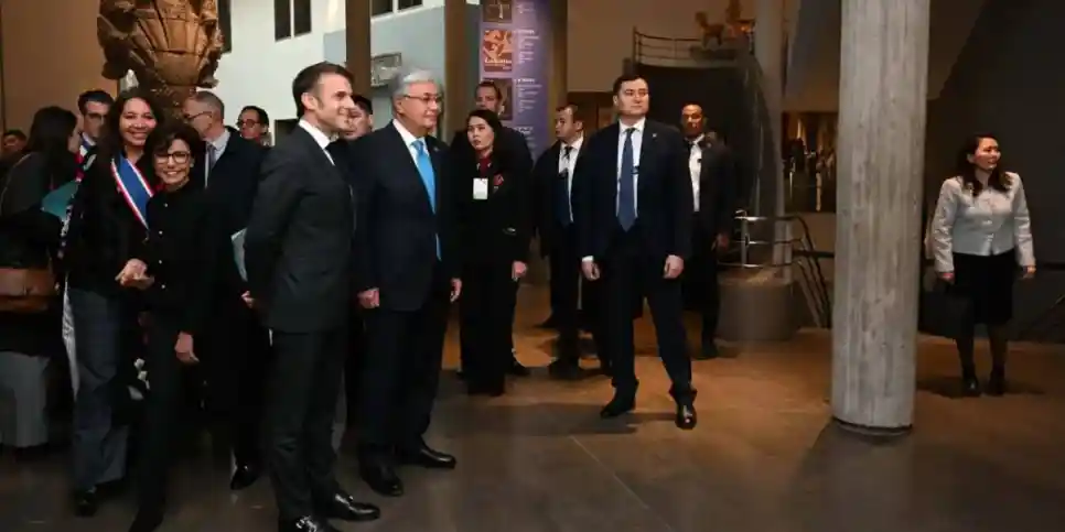 Қасым-Жомарт Тоқаев пен Эмманюэль Макрон Гиме азиялық өнер музейіндегі «Қазақстан: Ұлы дала жауһарлары» көрмесін тамашалады.