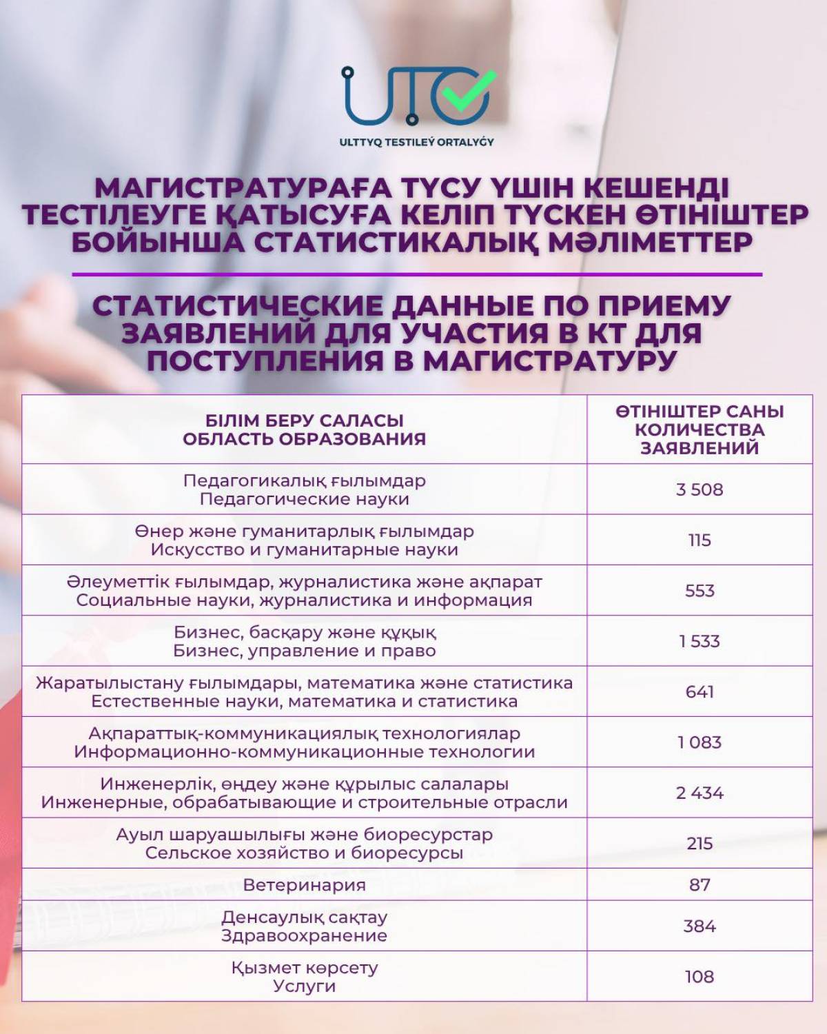Үміткерлер таңдаған салалар туралы статистиканы төмендегі кестеден көруге болады: