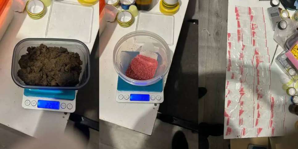 Жалға алған пәтерін тінту кезінде ұқсас заттар салынған 125 орама, ақ және қызыл түсті ұнтақ тәріздес заттары бар 5 контейнер, қара-сұр түсті тас тәріздес зат салынған 1 контейнер, сондай-ақ электронды таразы, zip-пакеттер және оқшаулағыш ленталар тәркіленді. Сараптама қорытындысы бойынша, алынған заттар: «Alpha-PVP» — 817,16 грамм, мефедрон — 782,44 грамм, гашиш — 192,13 грамм. Барлығы 1 келі 599,6 грамм есірткі заты анықталды.