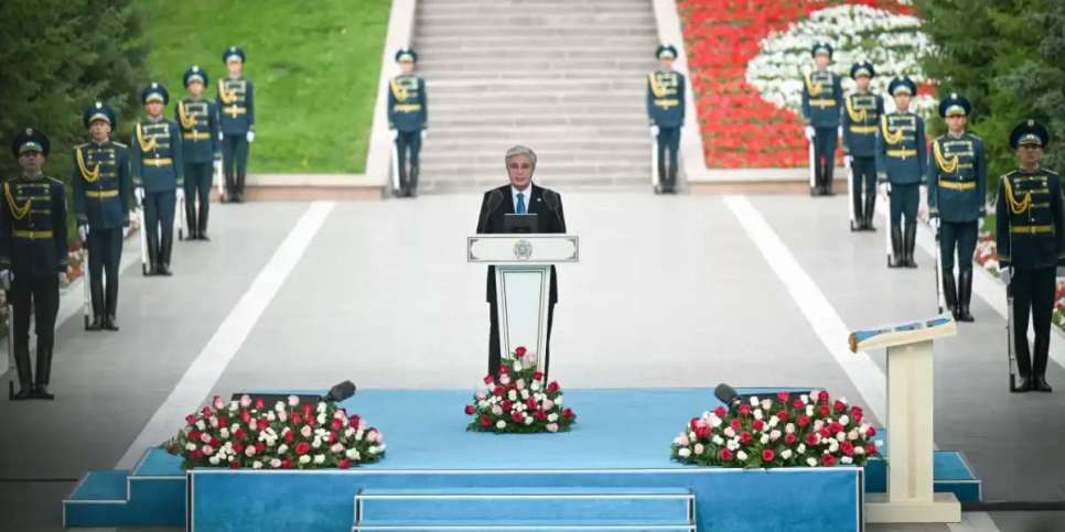 «Биыл жауынгерлеріміз бітімгерлік миссиясын көк байрақтың астында тұңғыш рет дербес орындап келді. Азаматтарымыздың, мемлекетіміздің осындай жетістіктері Қазақстанның қуатты әрі жасампаз ел екенін көрсетеді. Мемлекеттік рәміздер – ел мақтанышы. Елтаңбамыз, көк Туымыз бен Әнұранымыз әр азаматтың жүрегінен ерекше орын алады. Бұл – нағыз отаншылдық белгісі. Ұлт нышандары – халқымыздың болмыс-бітімінің айнасы, жарқын болашағымыздың кепілі», - деді Мемлекет басшысы.