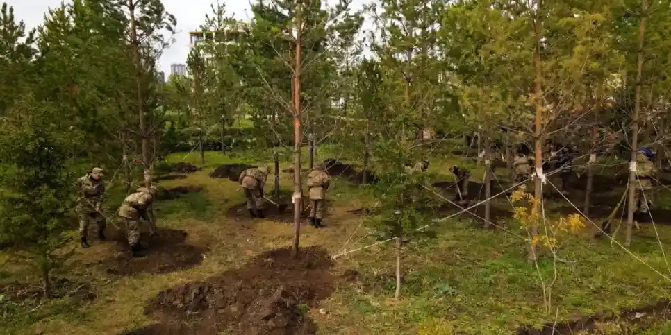 Іс-шара барысында 100 түп ірі қарағай мен 30 түп қайың отырғызылды.